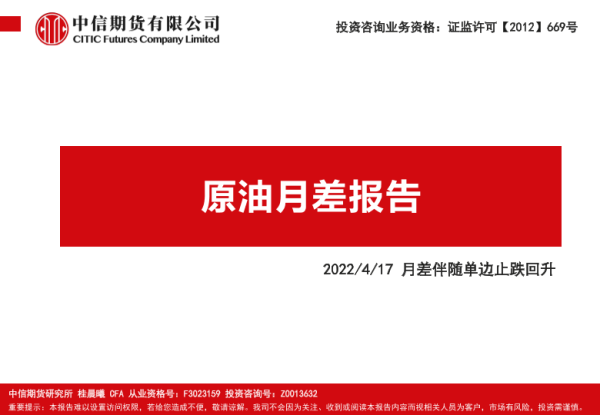 【中信期货】【20220417】原油月差报告:月差伴随单边止跌回升-23页 行业研究
