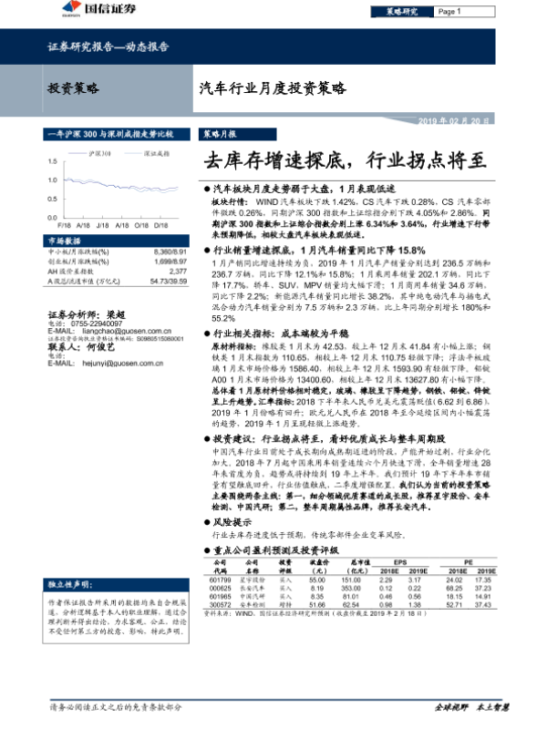 【国信证券】【20190220】20190220-国信证券-汽车行业月度投资策略:去库存增速探底,行业拐点将至-31页 行业研究