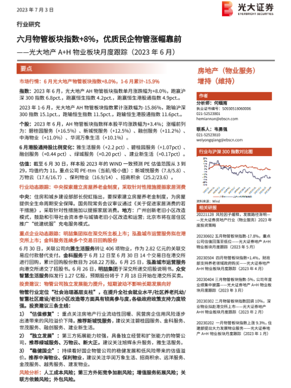 【光大证券】【20230703】六月物管板块指数+8%,优质民企物管涨幅靠前-11页 行业研究
