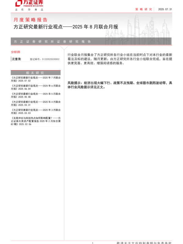 【方正证券】【202507】方正研究最新行业观点——2025年8月联合月报-24页 证券期货研究报告