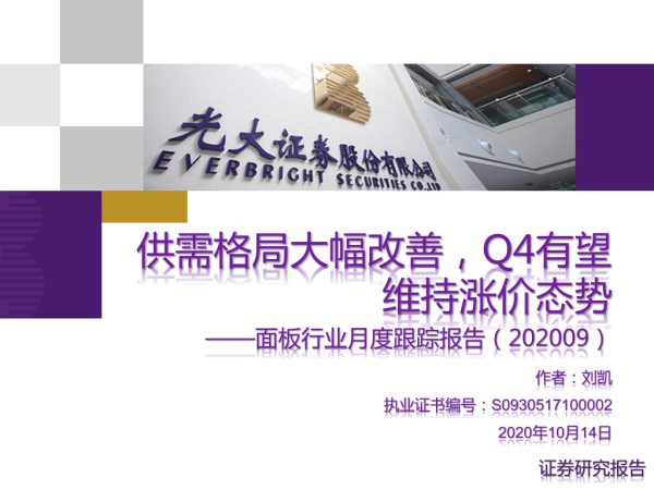 【光大证券】【20201014】面板行业月度跟踪报告(202009):供需格局大幅改善,Q4有望维持涨价态势-26页 行业研究