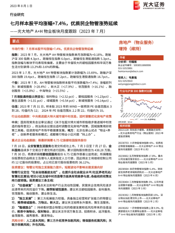 【光大证券】【20230801】2023年7月光大地产A+H物业板块月度跟踪-11页 行业研究