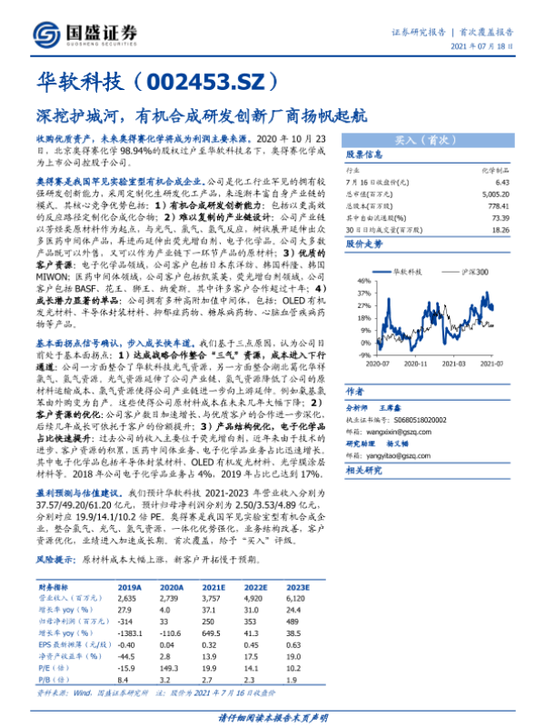 【国盛证券】【20210718】华软科技-002453.SZ-深挖护城河,有机合成研发创新厂商扬帆起航-36页 行业研究