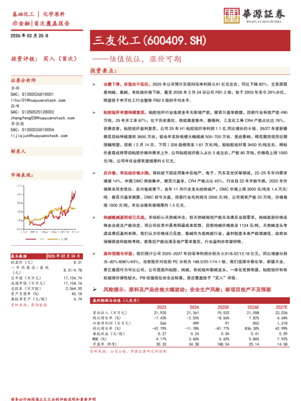 【华源证券】【202602】估值低位,涨价可期-3页 证券期货研究报告