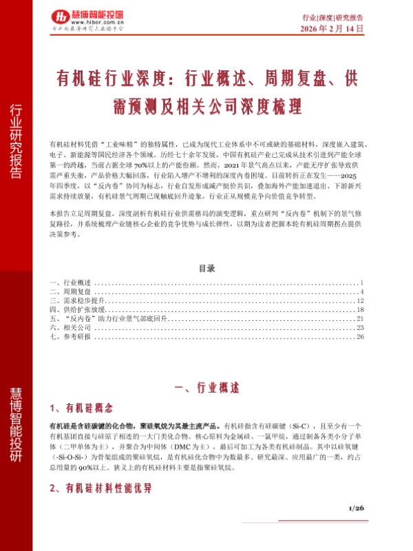 【慧博智能投研】【202602】有机硅行业深度:行业概述、周期复盘、供需预测及相关公司深度梳理-26页 行业研究