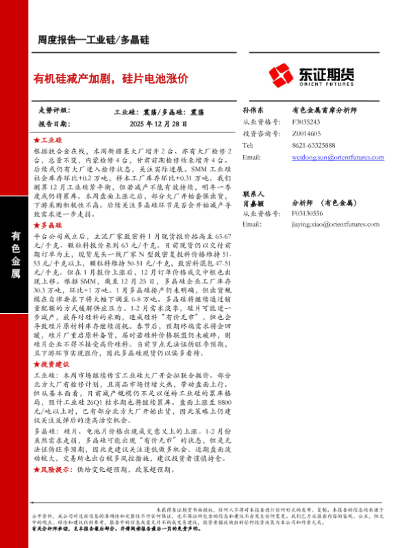 【东证期货】【202512】有机硅减产加剧,硅片电池涨价-15页 证券期货研究报告