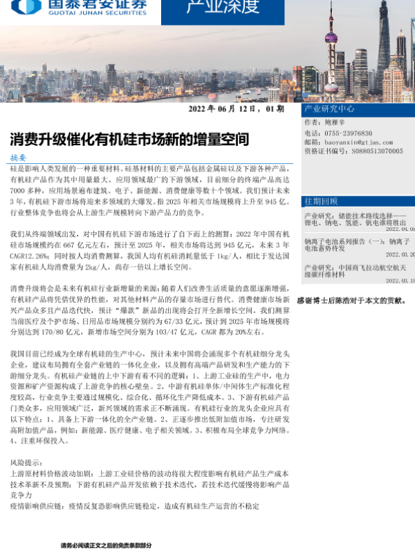 【国泰君安证券】【20220616】产业深度:消费升级催化有机硅市场新的增量空间-19页 行业研究