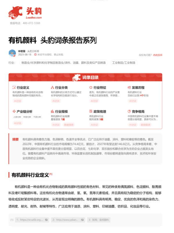 【头豹研究院】【20230818】有机颜料 头豹词条报告系列-22页 行业研究