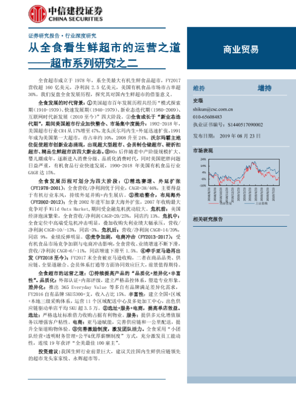 【中信建投证券】【20190823】商业贸易行业超市系列研究之二:从全食看生鲜超市的运营之道-46页 行业研究