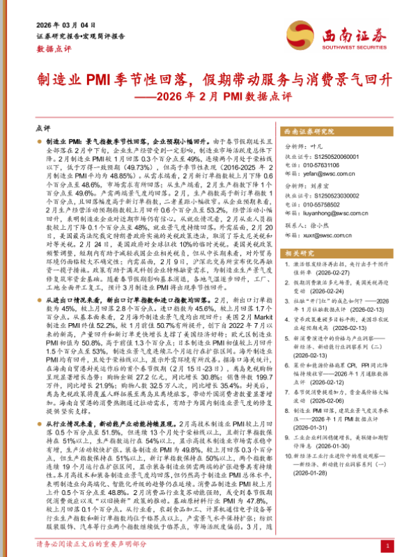 【西南证券】【202602】2026年 2月 PMI数据点评-7页 证券期货研究报告