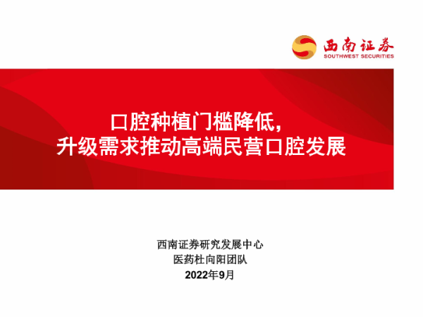 【西南证券】【202209】口腔种植门槛降低,升级需求推动高端民营口腔发展-30页 行业研究