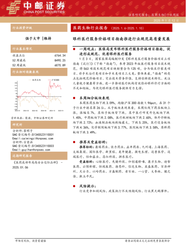 【中邮证券】【20250112】眼科医疗服务价格项目指南推进行业规范高质量发展-13页 行业研究