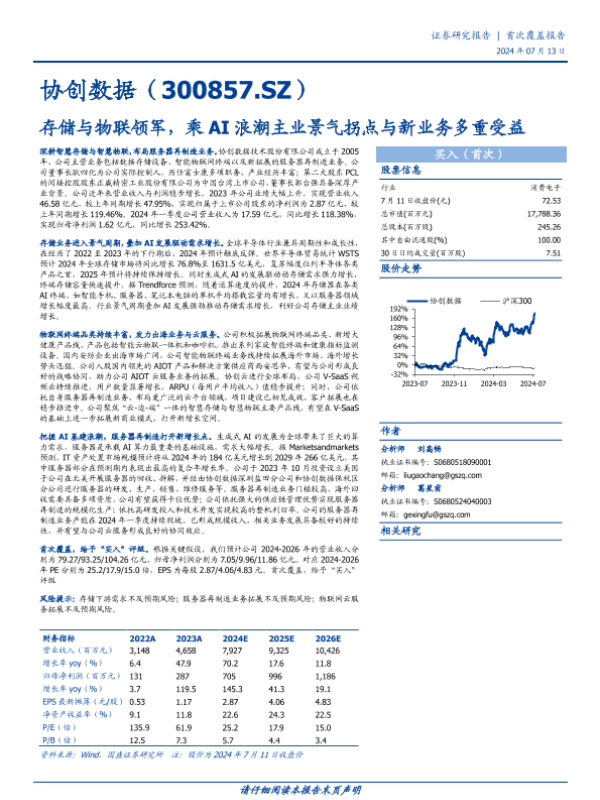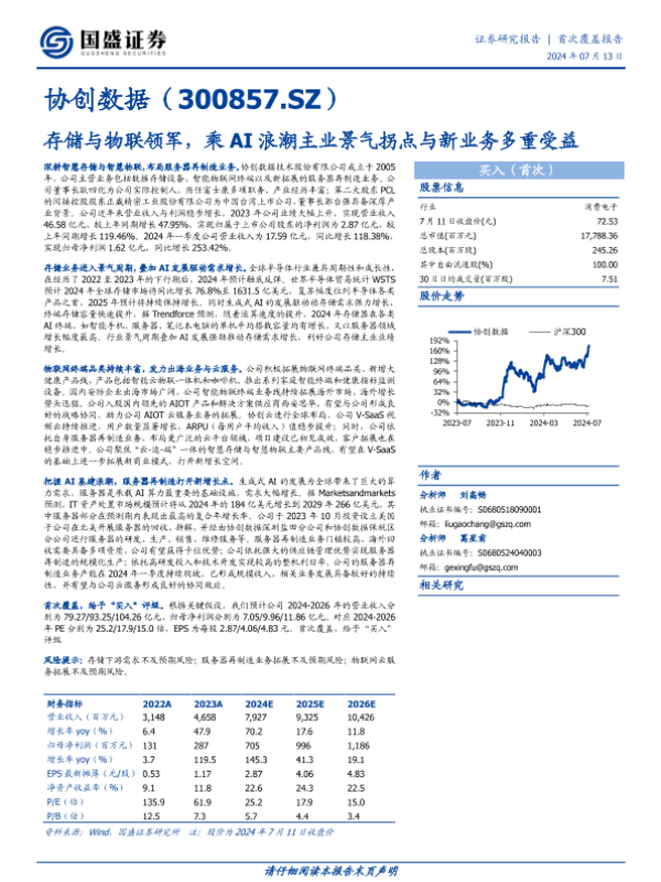 【国盛证券】【20240713】20240713-国盛证券-协创数据-300857.SZ-存储与物联领军,乘AI浪潮主业景气拐点与新业务多重受益-20页 行业研究