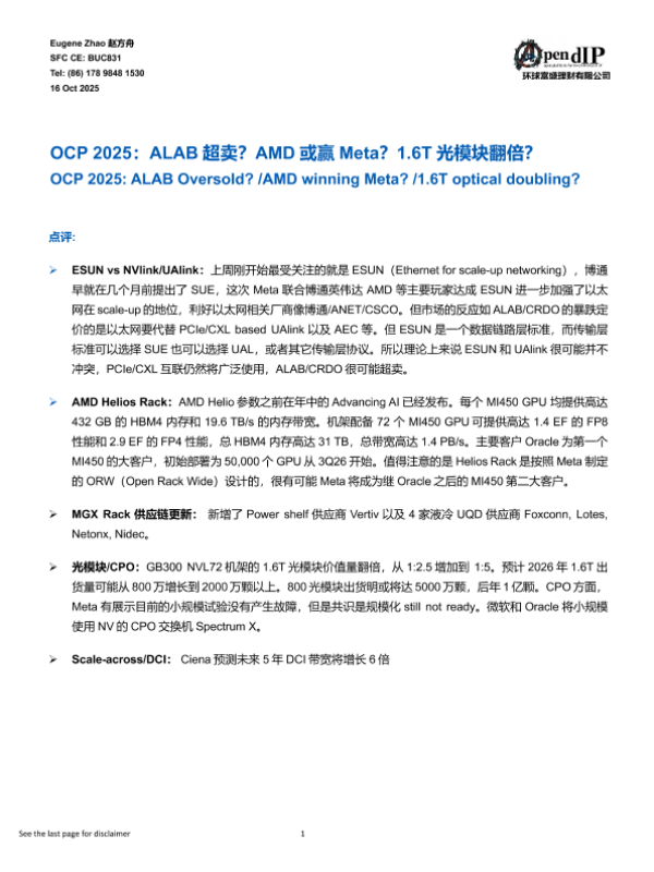 【环球富盛理财有限公司】【202510】OCP 2025:ALAB超卖?AMD或赢 Meta?1.6T光模块翻倍?-5页 证券期货研究报告