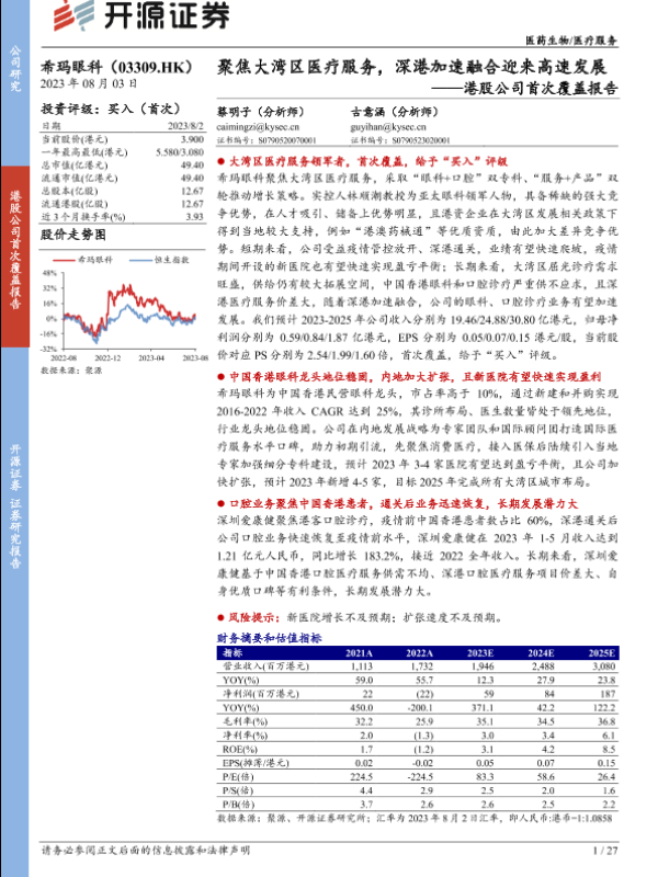 【开源证券】【20230805】希玛眼科(03309)港股公司首次覆盖报告:聚焦大湾区医疗服务,深港加速融合迎来高速发展-27页 行业研究