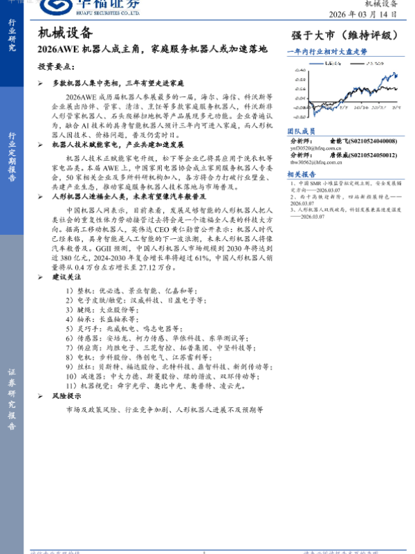 【华福证券】【202603】2026AWE机器人成主角,家庭服务机器人或加速落地-2页 证券期货研究报告