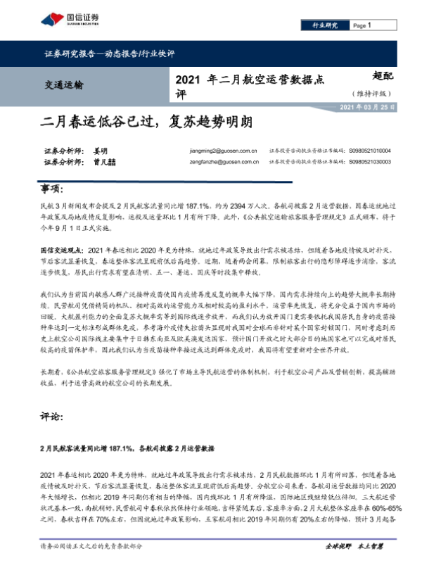 【国信证券】【20210325】2021年二月航空运营数据点评-9页 行业研究