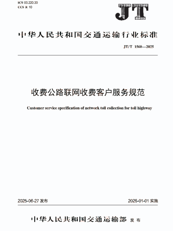 【全国智能运输系统标准化技术委员会(SAC/TC 268)】【202506】收费公路联网收费客户服务规范-13页 指南