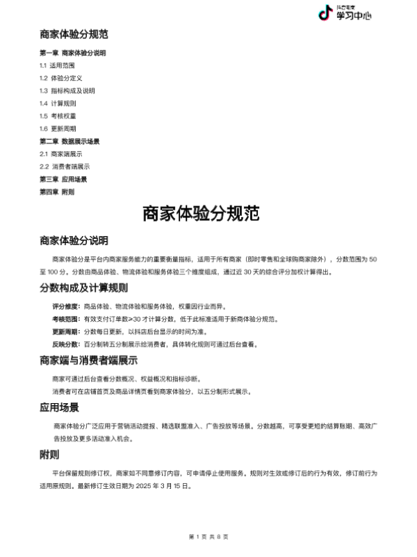 【抖音】【20250315】2025抖音商家体验分规范-8页 指南