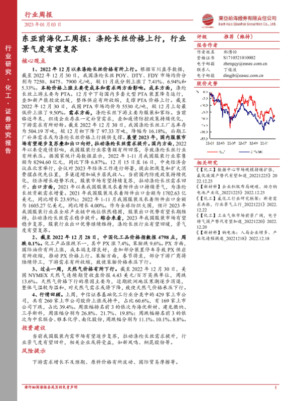 【东亚前海证券】【20230103】20230103-东亚前海证券-化工周报:涤纶长丝价格上行,行业景气度有望复苏-23页 行业研究