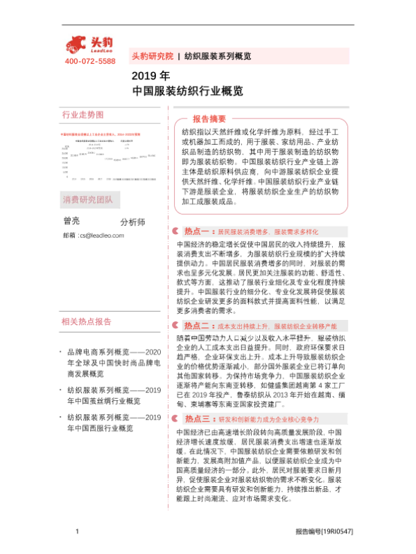【头豹研究院】【20200904】2019年中国服装纺织行业概览-35页 行业研究