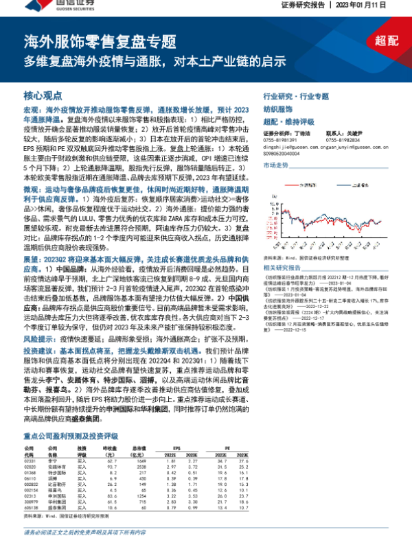 【国信证券】【20230111】海外服饰零售复盘专题:多维复盘海外疫情与通胀,对本土产业链的启示-53页 行业研究