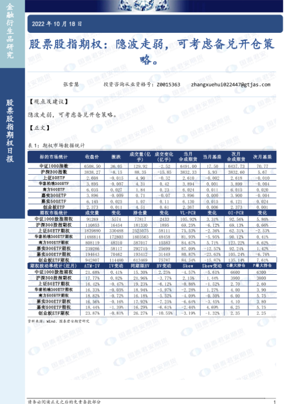 【国泰君安期货】【20221018】股票股指期权:隐波走弱,可考虑备兑开仓策略-26页 行业研究
