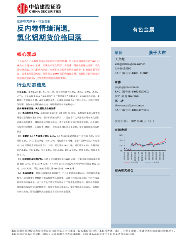 【中信建投证券】【202508】反内卷情绪消退,氧化铝期货价格回落-13页 证券期货研究报告