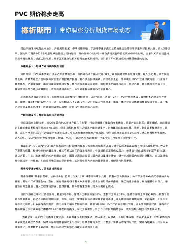 【宝城期货】【202303】PVC期价稳步走高-3页 证券期货研究报告