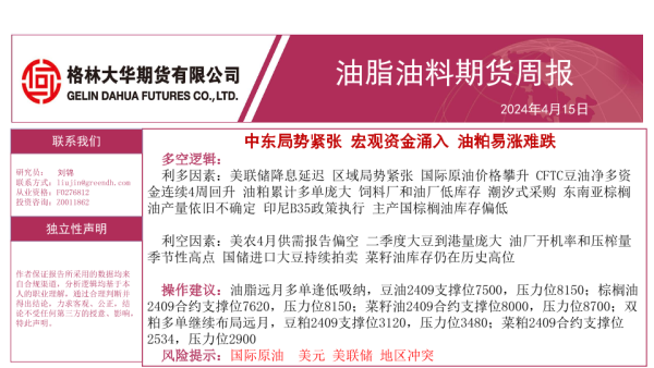 【格林大华期货】【20240415】油脂油料期货周报_中东局势紧张_宏观资金涌入_油粕易涨难跌-35页 行业研究