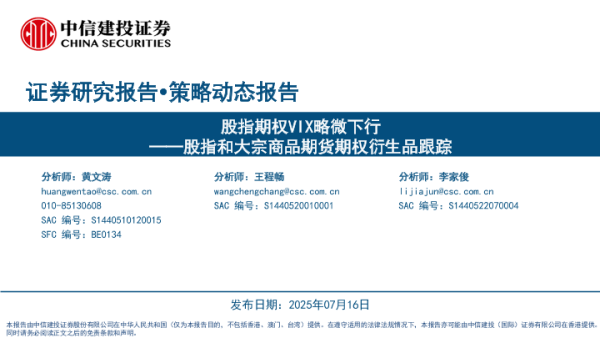 【中信建投证券】【20250716】股指和大宗商品期货期权衍生品跟踪:股指期权VIX略微下行-61页 证券期货研究报告