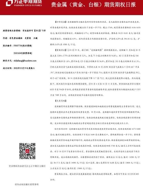 【方正中期期货】【20221019】贵金属(黄金、白银)期货期权日报20221019-23页 行业研究