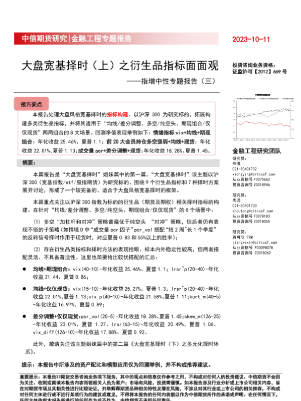 【中信期货】【20231011】指增中性专题报告(三):大盘宽基择时(上)之衍生品指标面面观-16页 行业研究