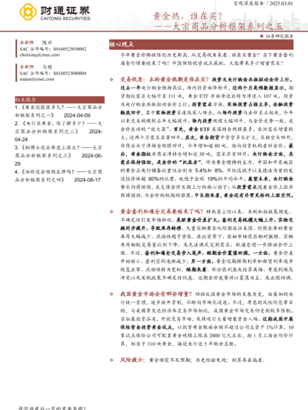 【财通证券】【20250301】黄金热,谁在买?——大宗商品分析框架系列之五-17页 行业研究