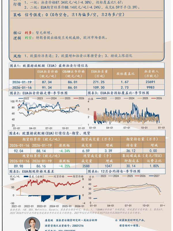 【国泰君安期货】【202601】欧盟碳市场行情简报(2026年第12期)-1页 证券期货研究报告