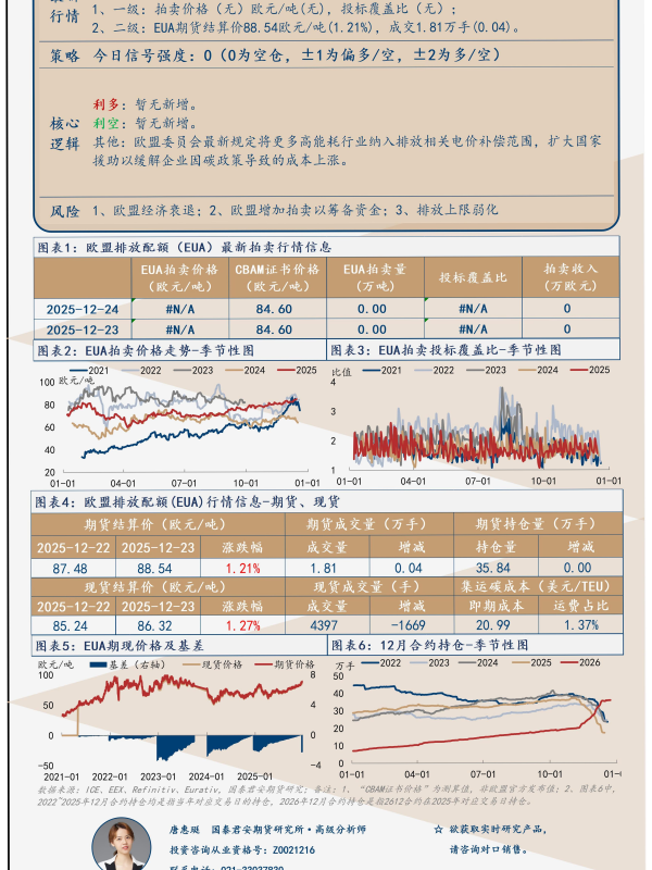 【国泰君安期货】【202512】欧盟碳市场行情简报(2025年第230期)-1页 证券期货研究报告