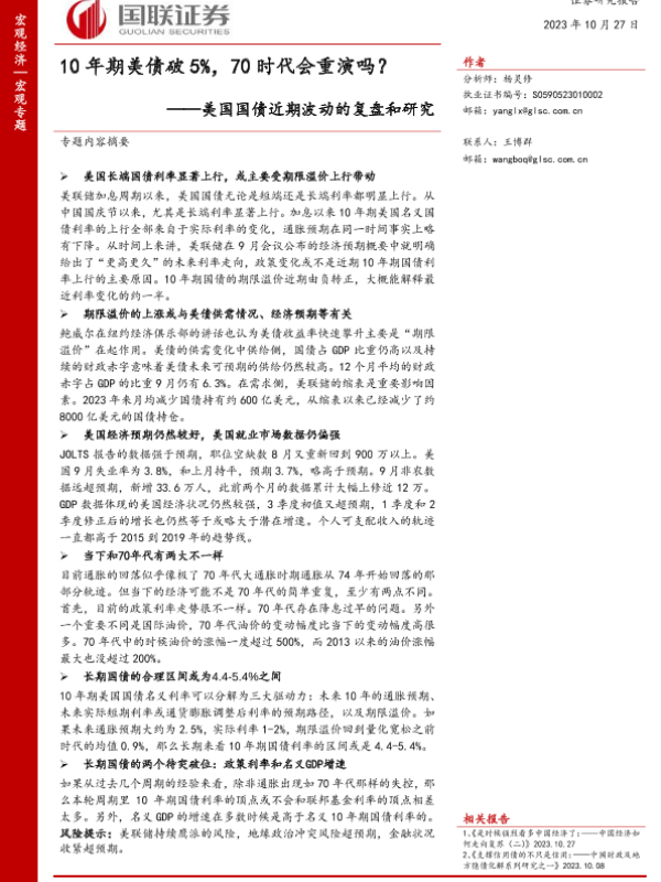 【国联证券】【20231027】美国国债近期波动的复盘和研究:10年期美债破5%,70时代会重演吗?-38页 行业研究