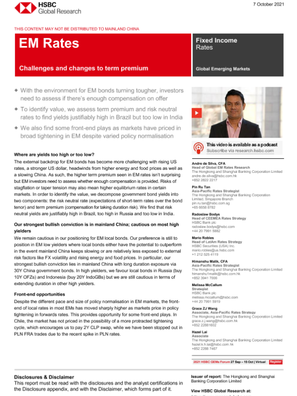 【The Hongkong and Shanghai Banking Corporation Limited】【20211007】HSBC-新兴市场投资策略-期限溢价的挑战和变化-44页 行业研究