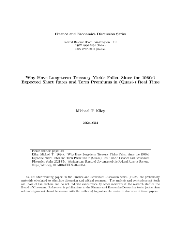 【Federal Reserve Board】【2024054】为什么自20世纪80年代以来,长期国债收益率一直在下降?(准)实时的预期短期利率和定期保费-24页 行业研究