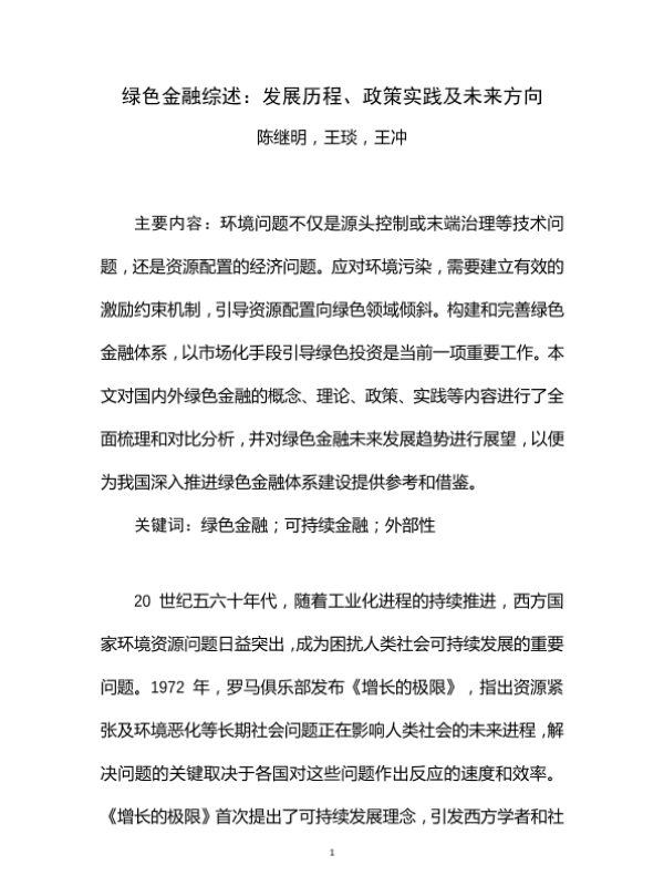【陈继明,王琰,王冲】【2023】绿色金融综述:发展历程、政策实践及未来方向-24页 行业研究