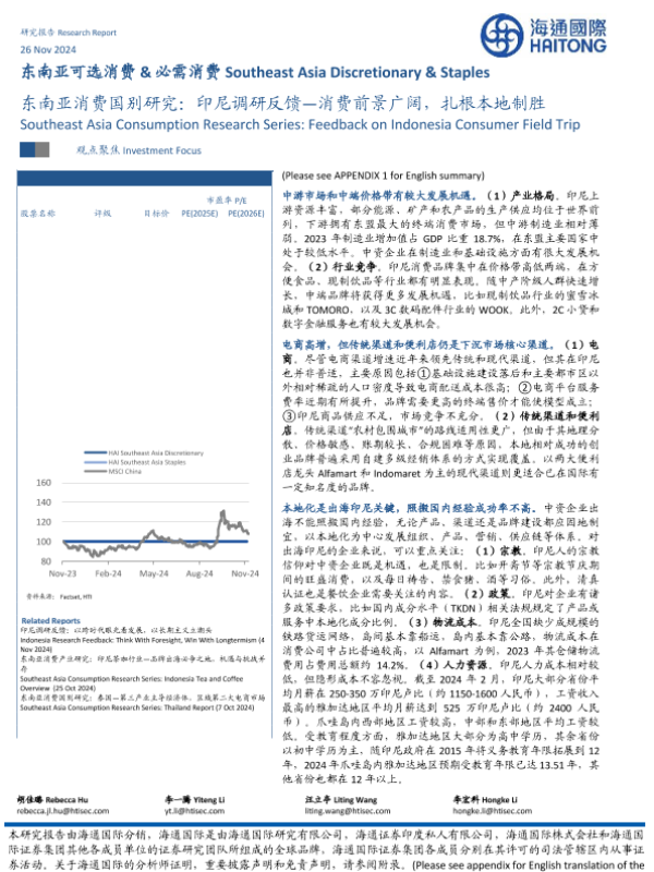 【海通国际】【20241126】东南亚可选消费&必需消费行业:消费国别研究,印尼调研反馈—消费前景广阔,扎根本地制胜-18页 行业研究