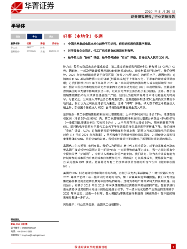 【华兴证券】【20200826】20200826-华兴证券-半导体行业行业更新报告:好事(本地化)多磨-7页 行业研究