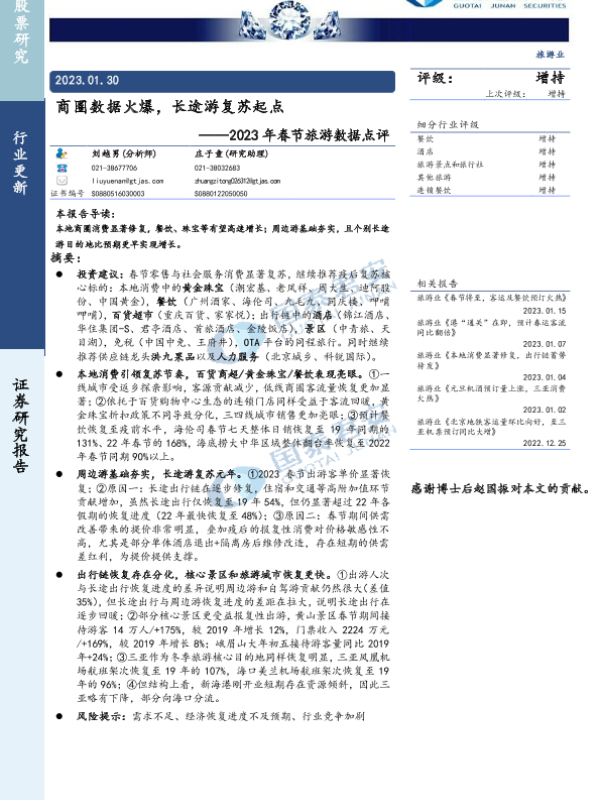 【国泰君安证券】【20230130】商圈数据火爆,长途游复苏起点-16页 行业研究
