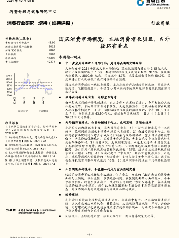 【国金证券】【20211008】国庆消费市场概览:本地消费增长明显,内外循环有看点-8页 行业研究