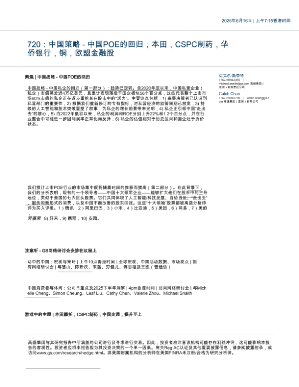 【Goldman Sachs】【20250616】中国策略-中国民营企业、本田、石药集团、华侨银行、铜、欧盟金融机构的复苏:聚焦 中国策略-中国民营企业的复苏-8页 行业研究