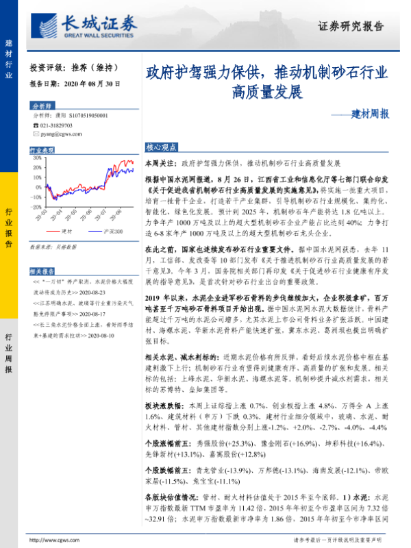 【长城证券】【20200830】政府护驾强力保供,推动机制砂石行业高质量发展-18页 行业研究