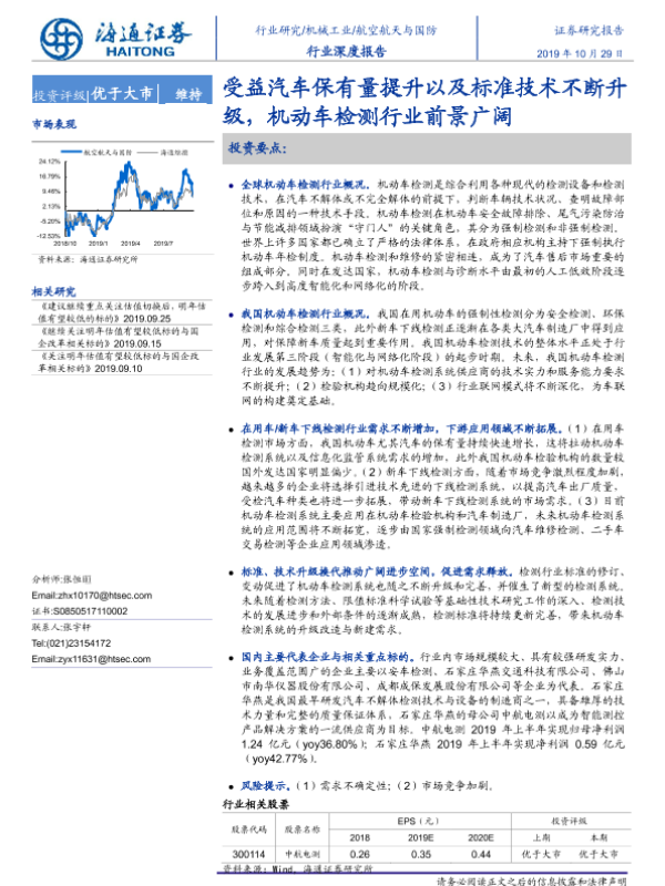 【海通证券】【20191029】受益汽车保有量提升以及标准技术不断升级,机动车检测行业前景广阔-24页 行业研究