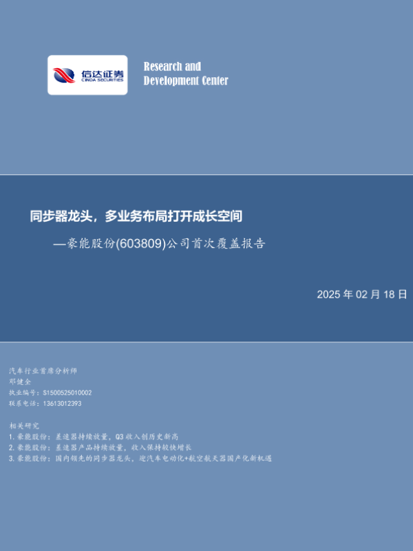 【信达证券】【20250218】豪能股份:同步器龙头,多业布局打开成长空间-25页 行业研究
