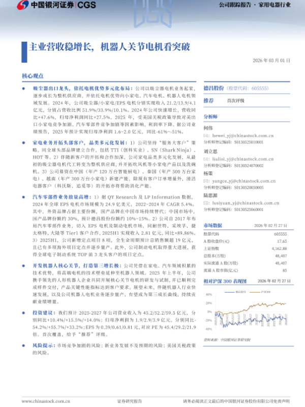 【银河证券】【202603】主业营收稳增长,机器人关节电机看突破-15页 证券期货研究报告