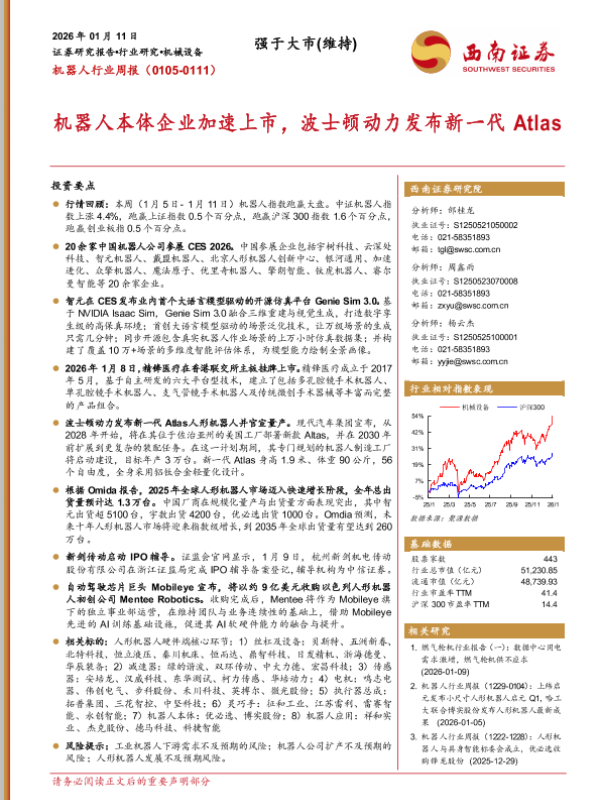 【西南证券】【202601】机器人本体企业加速上市,波士顿动力发布新一代Atlas-11页 证券期货研究报告